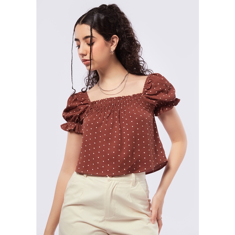 COLORBOX Crinkle Puff Sleeves Top Brown