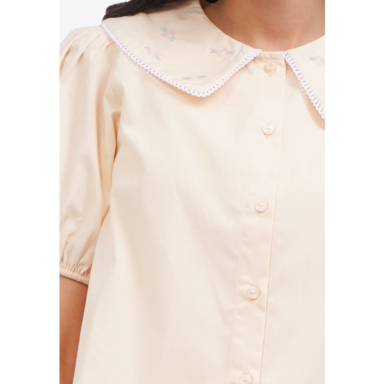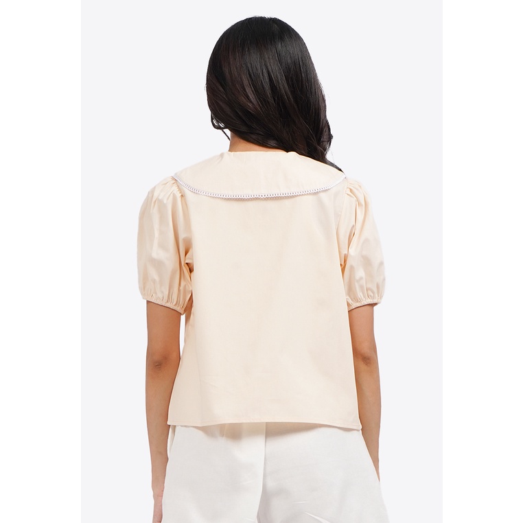 COLORBOX Printed Collar Puff Sleeve Blouse Beige