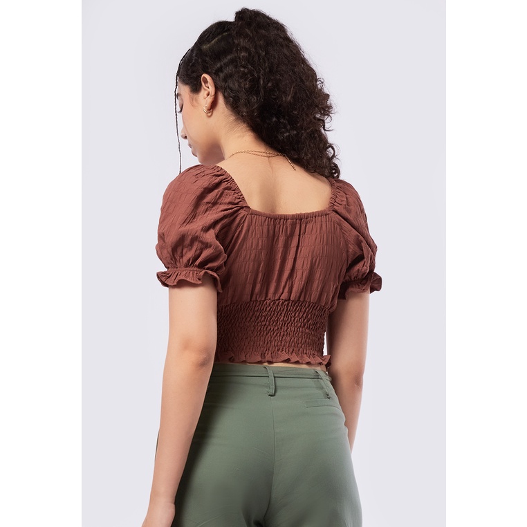 COLORBOX Puff Sleeve Smocked Top Brown