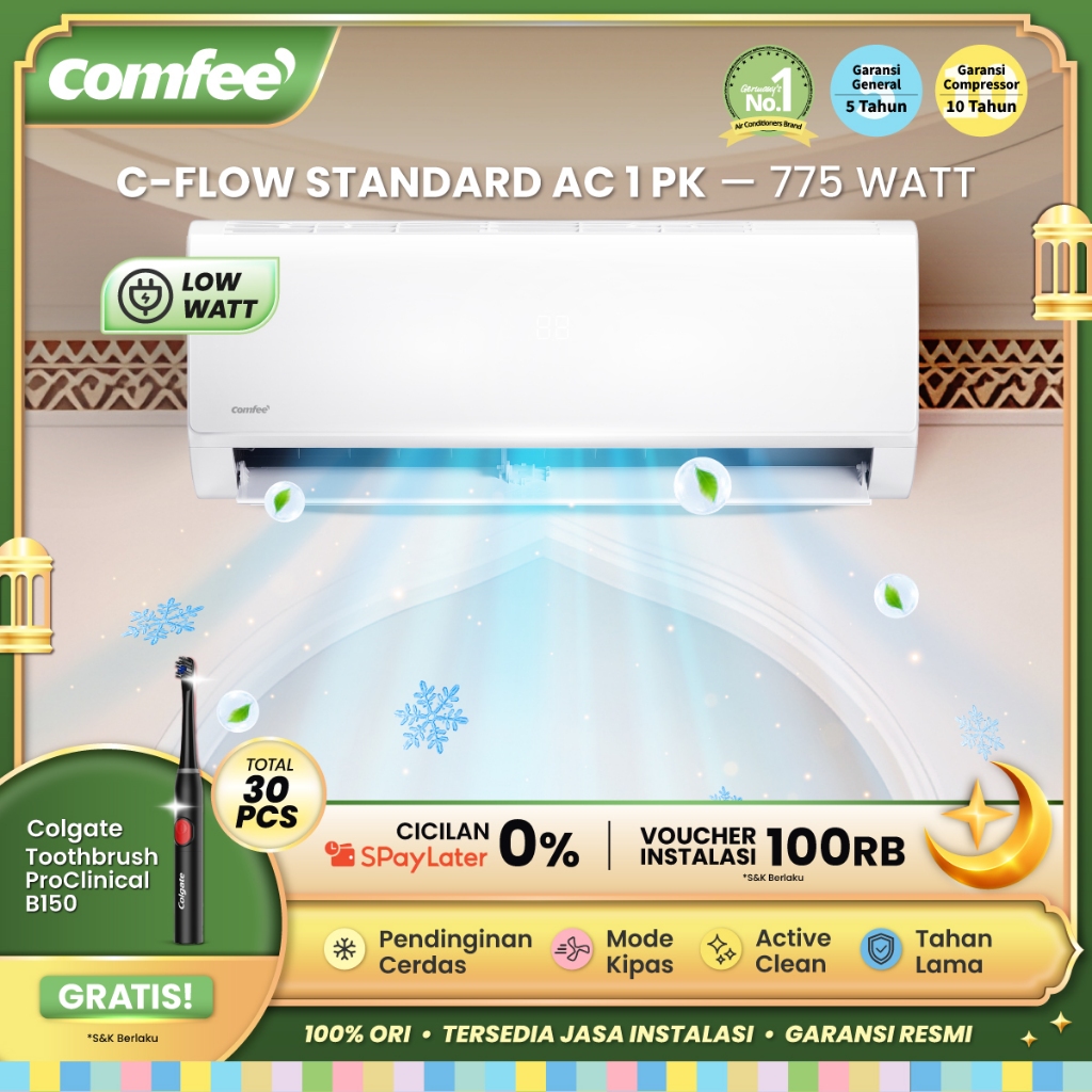 COMFEE C-FLOW AC 1 PK STANDARD CFS-09FST Low Watt [INDOOR + OUTDOOR ONLY] - 1 PK Baru [FAST COOLING] [SLEEP MODE] [ECO MODE] [ANTI KOROSI] [ACTIVE CLEAN] [GRATIS ONGKIR]