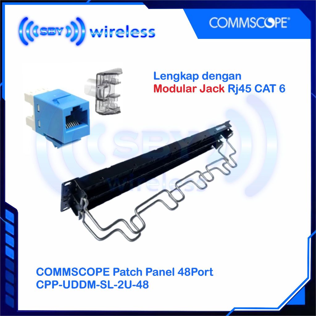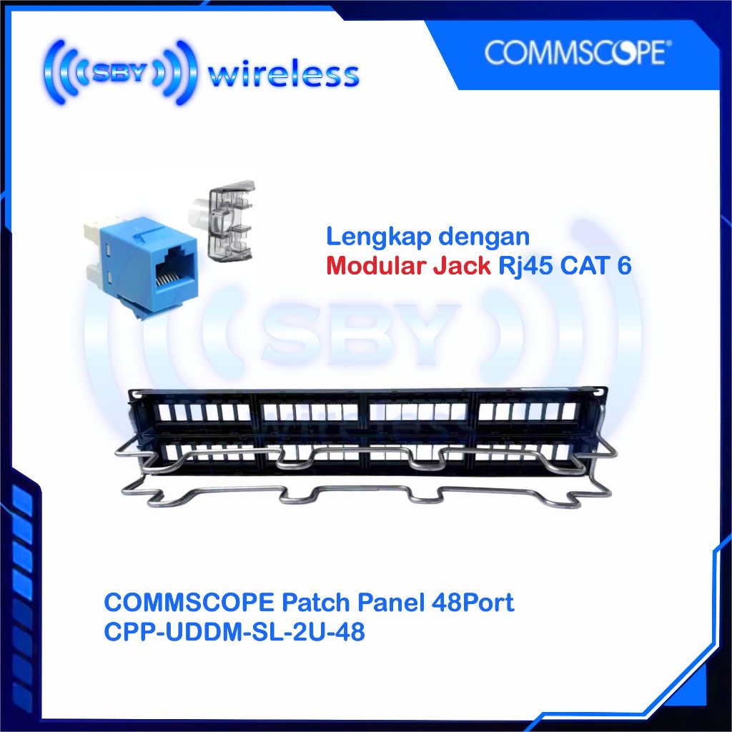 COMMSCOPE Patch Panel 48Port Lengkap Modular RJ45 CAT 6, Patchpanel 48 Port AMP CPP-UDDM-SL-2U-48