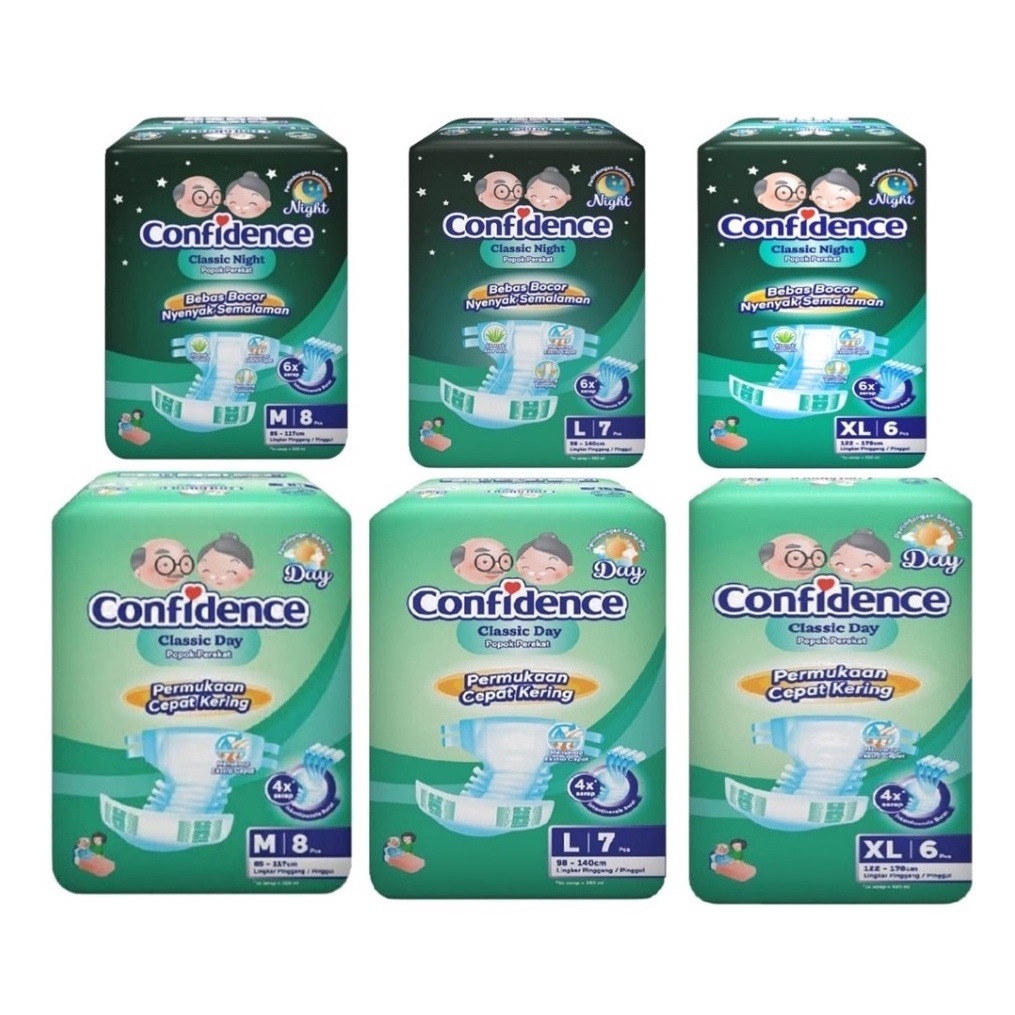 CONFIDENCE Classic Day / Night Popok Dewasa Perekat Celana M8/L7/XL6 Diaper Untuk Dewasa Lansia Ibu Melahirkan Kemasan Pack - Pampers Orang Tua Anti Bocor Dan Tahan Lama