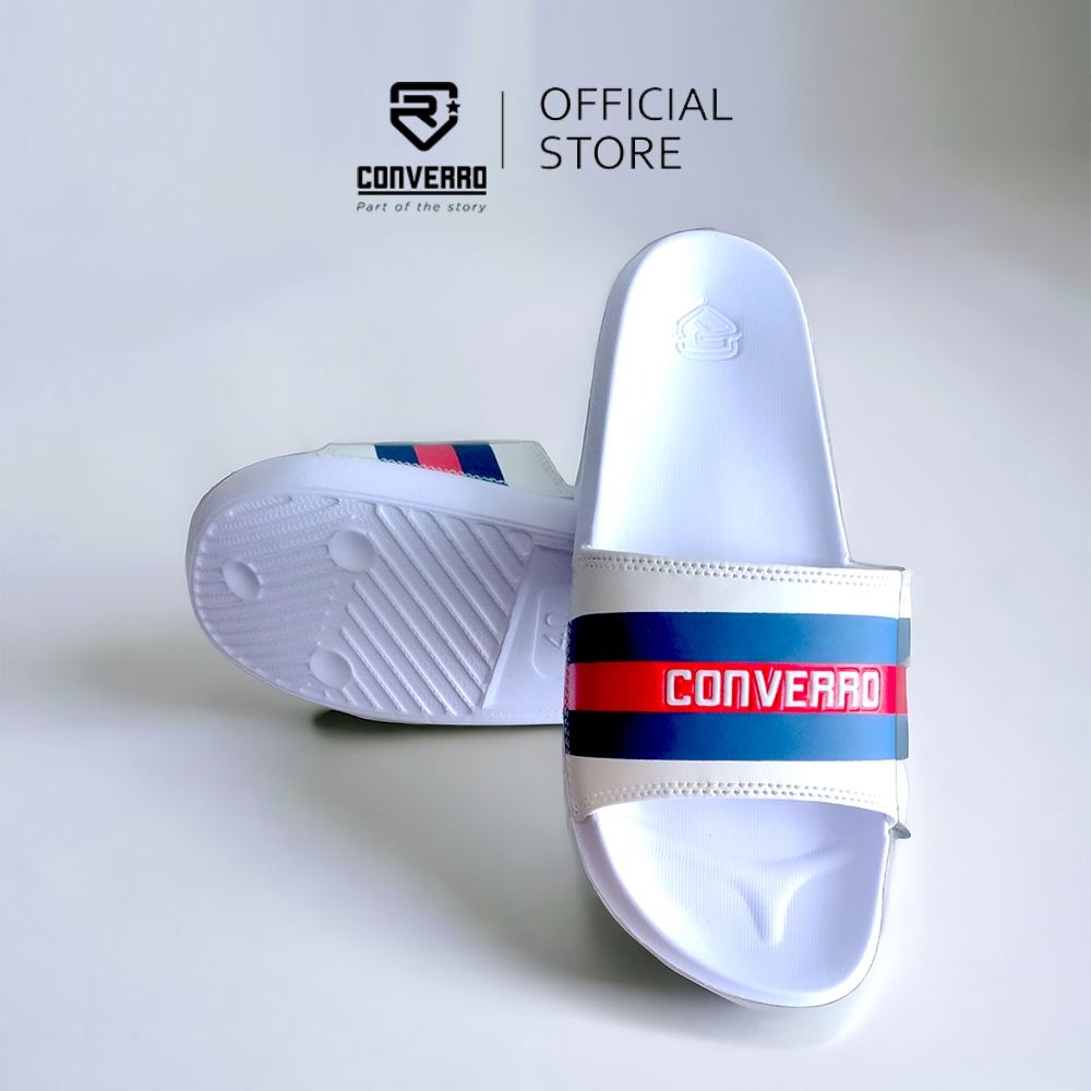 CONVERRO Sendal Selop Distro Pria Wanita Original Red Line Putih / Sendal Slop Pria / Sendal Slip On Pria / Sendal Slide Pria