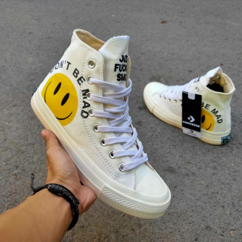CONVERSE PUTIH MURAH SEPATU Cewek Keren TERBARU 2020 SEPATU PREMIUM CONVERSE ALL STAR MOTIF SMILEY