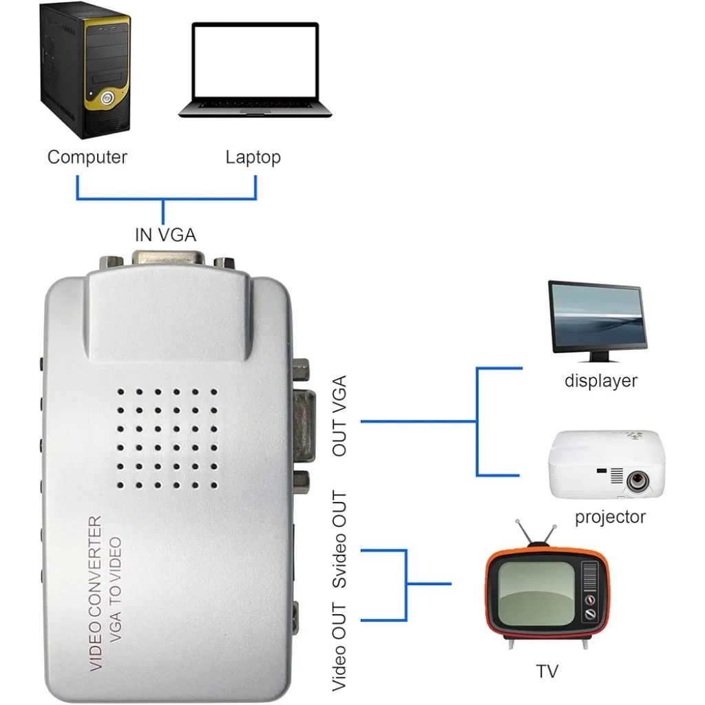 Video Adapter Converter from VGA to AV, RCA,S-Video for Monitor PC Projectors