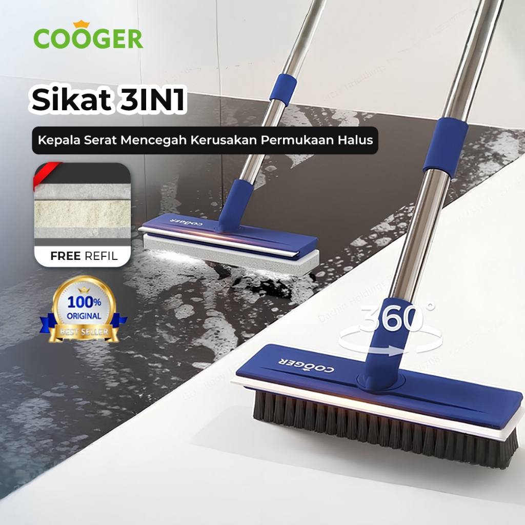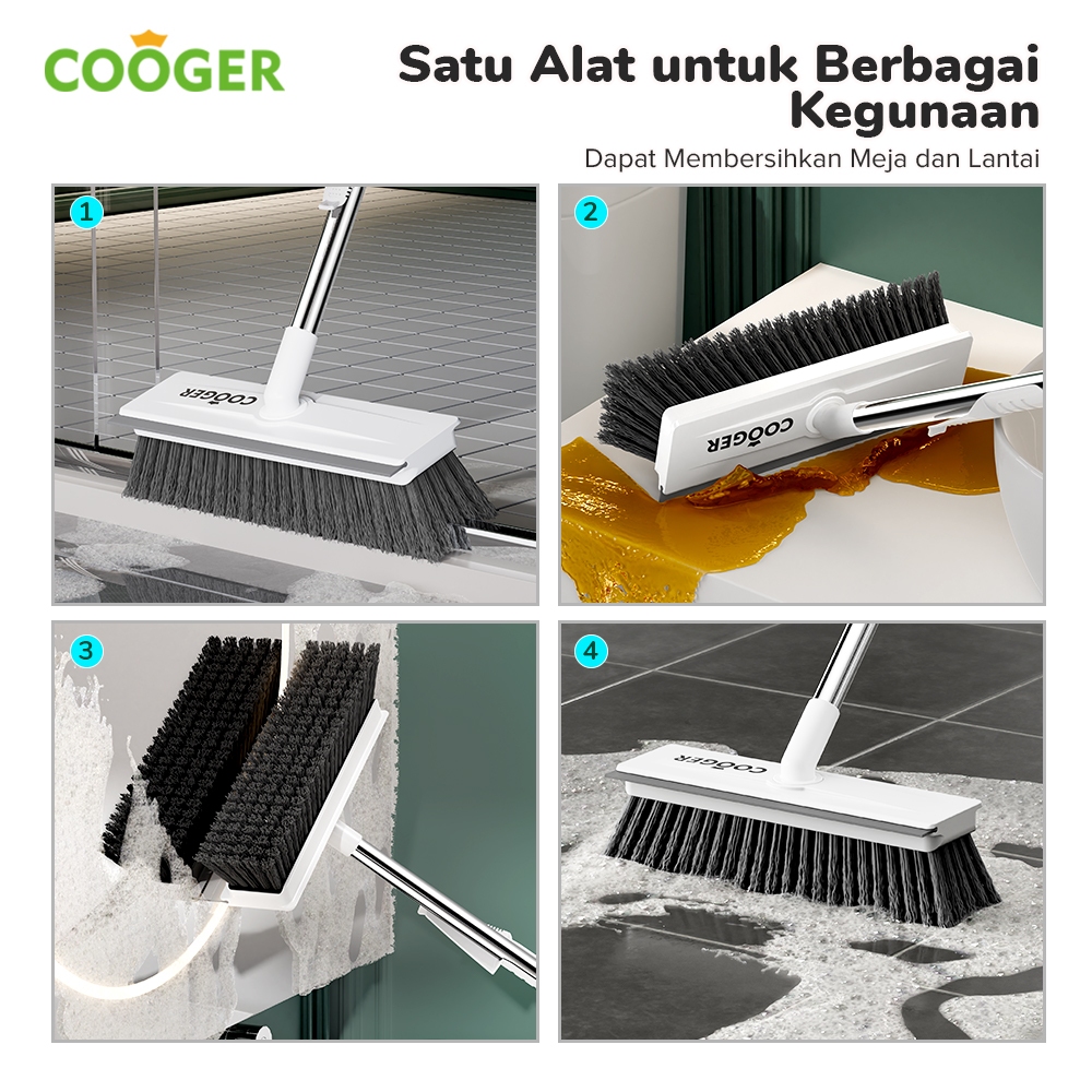 COOGER Sikat Lantai Brush Wiper Pembersih Lantai Kamar Mandi dengan Wiper Gagang Panjang Sikat Toilet Pembersih Serbaguna