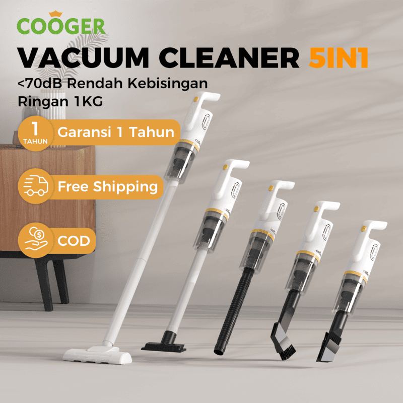 COOGER Vacum Cleaner 5IN1 Alat Penyedot Debu Lantai Dengan Daya Hisap Kuat Vacuum Cleaner Serbaguna Dengan Gagang Putih