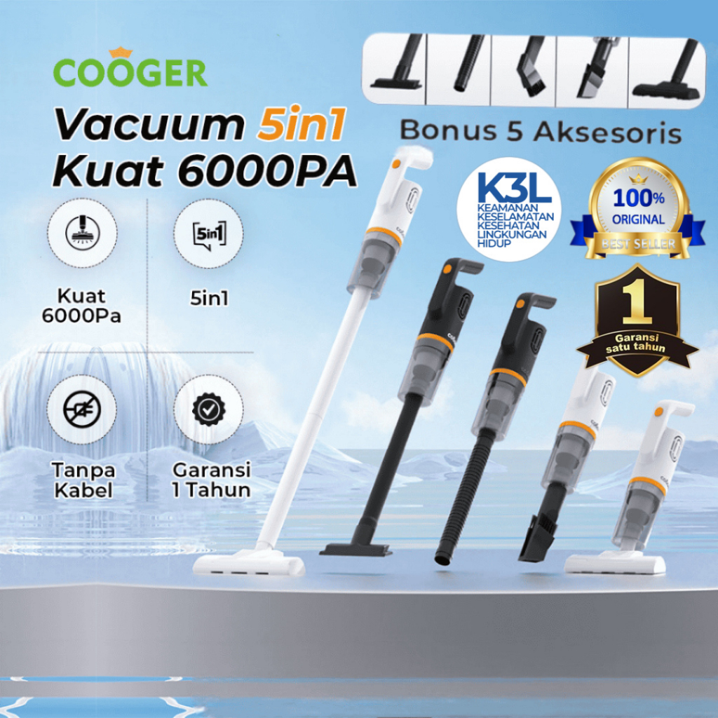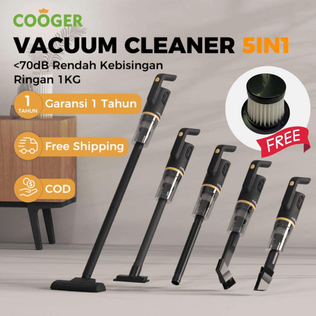 COOGER New Vacuum Cleaner 5IN1 Penyedot Debu Serbaguna Garansi 1 Tahun Dengan Gagang Panjang Warna Hitam Elegan Daya Hisap Kuat Bisa Digunakan Untuk Sudut Rumah dan Sofa