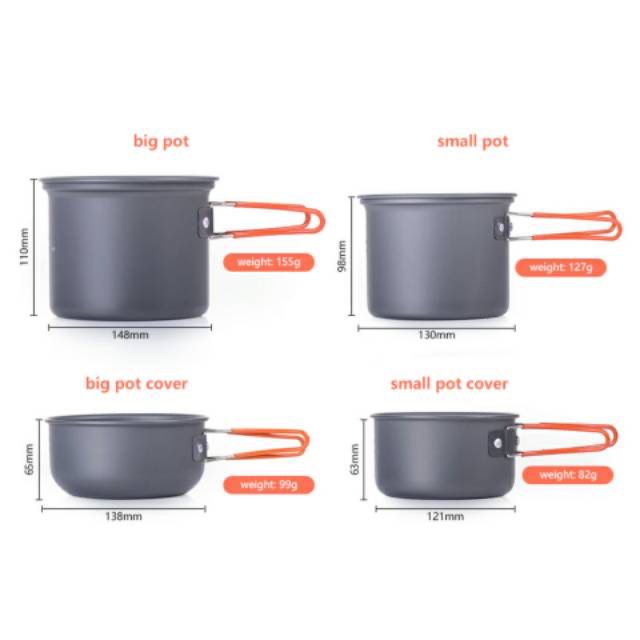 COOKING SET NATUREHIKE NH15T401-G ALUMINIUM ALAT MASAK CAMPING PIKNIK PERALATAN MASAK NESTING PENDAKI GUNUNG ANTI LENGKET