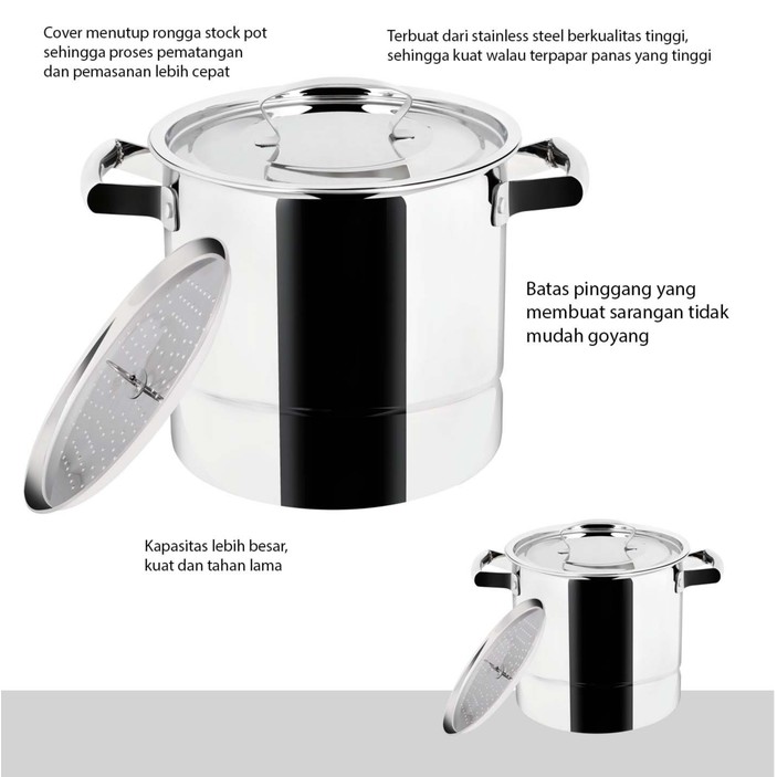 COOKVILLE Deep Steamer Pot 26 cm Dandang Tinggi 26cm Stainless Steel