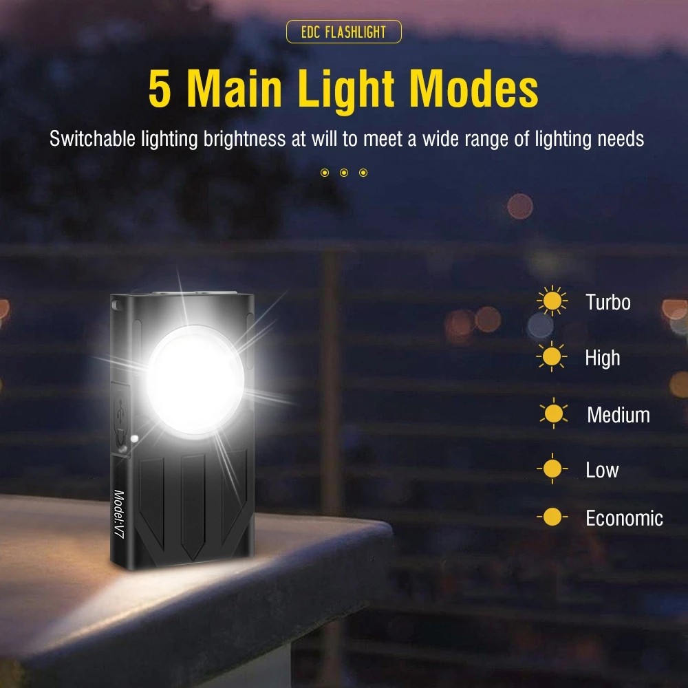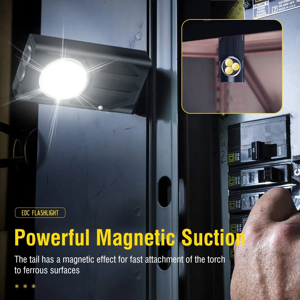 CORKILUX LED EDC Square Flashlight Keychain UV Lights USB C Rechargeable Portable Mini Bright Work Flash Light Keyring Torch