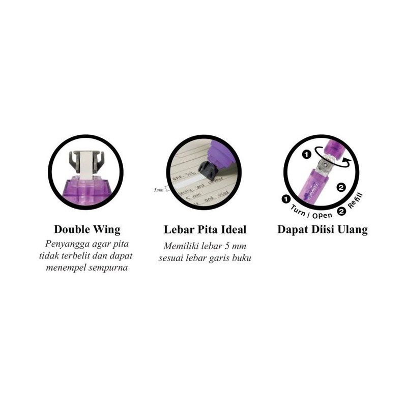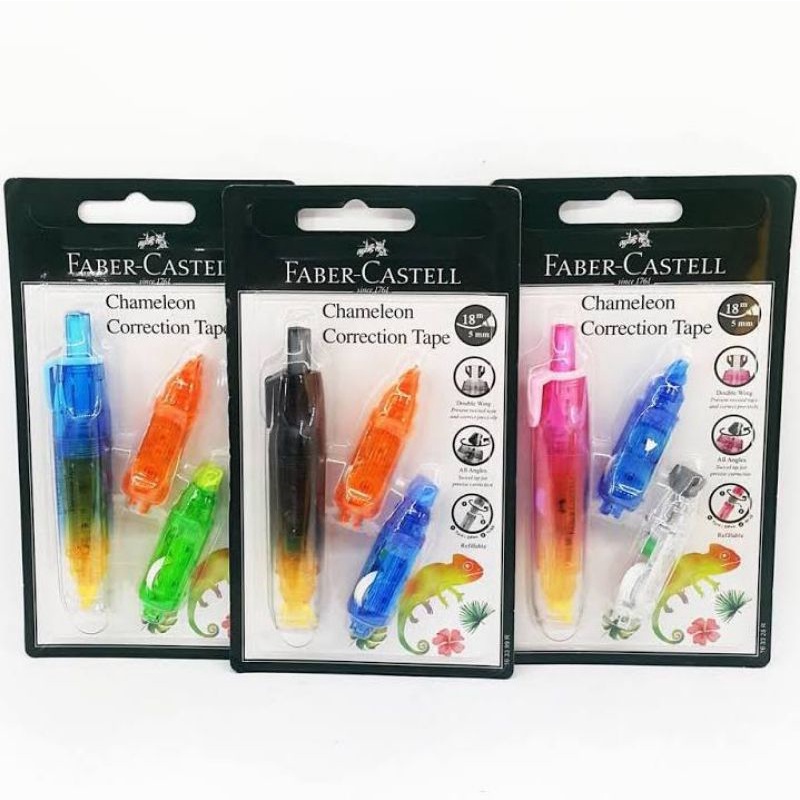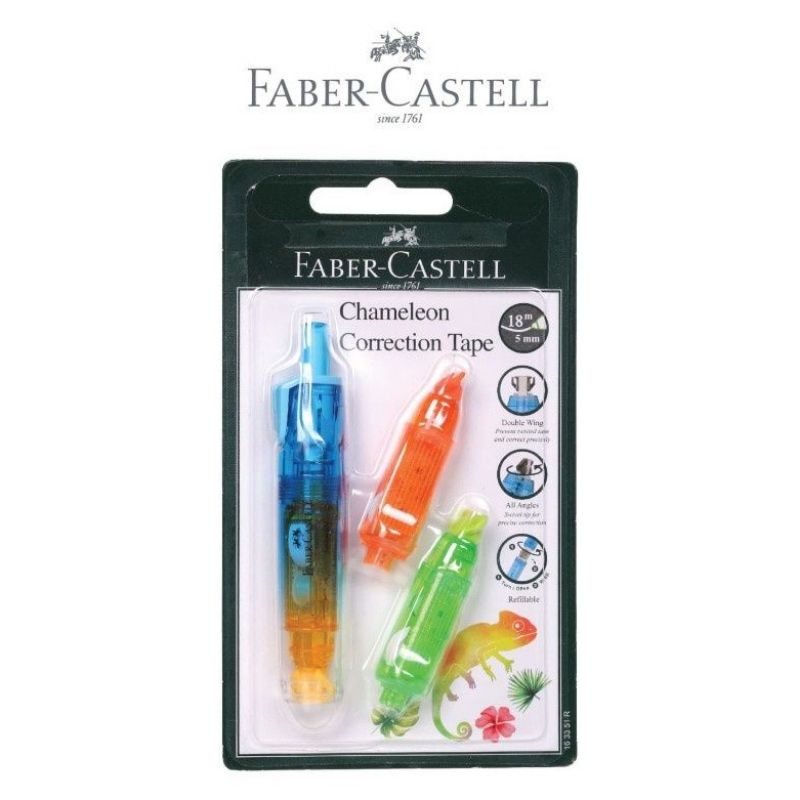 CORRECTION TAPE CHAMELEON + 2 REFILL FABER CASTELL | TIPEX KERTAS | PENGHAPUS PENA PLUS ISI ULANG | 5mm x 6M