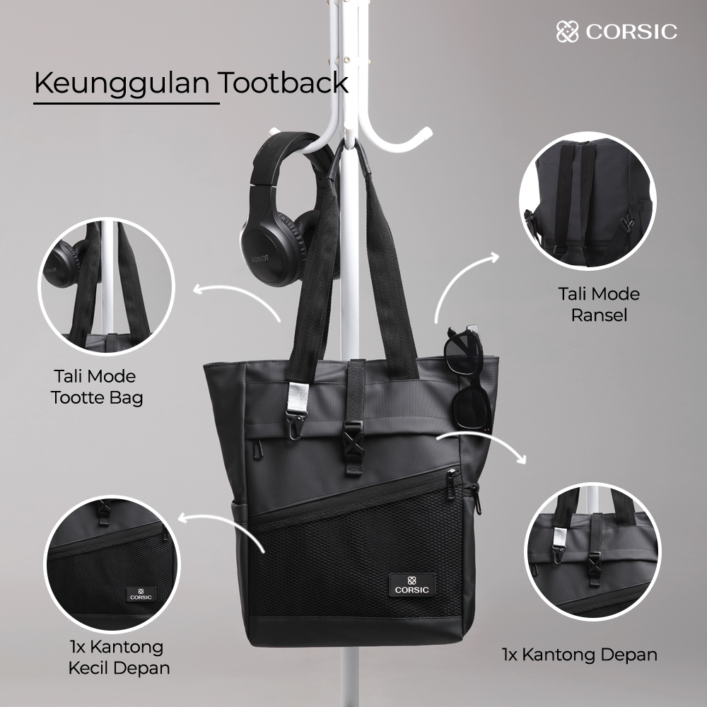 CORSIC Tas Tootback Ransel Punggung Multifungsi Sekolah Kuliah Unisex Tas Laptop 15 Inch Tahan Air