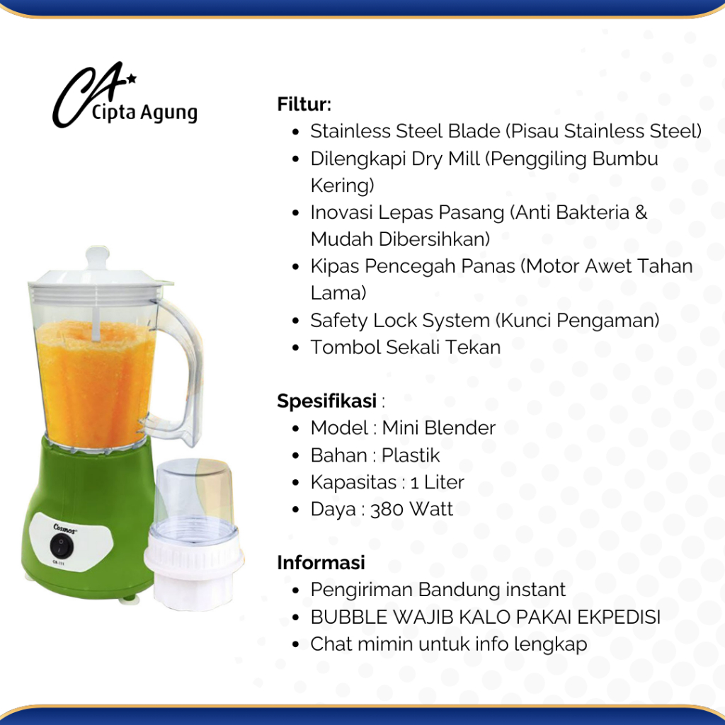 COSMOS BLENDER CB-111 CB111 CB 111 1L 1 LITER MIDORI SERIES GARANSI RESMI