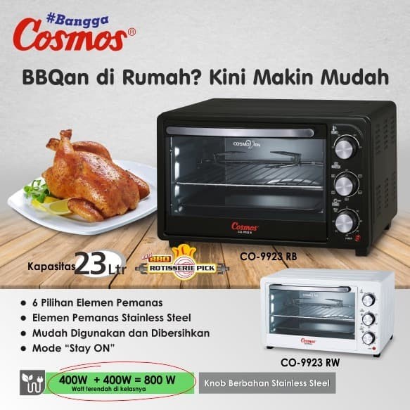 COSMOS OVEN ELECTRIC CO 9923 RB OVEN LISTRIK/CO9923RB/CO9923 RB/CO 9923RB/CO-9923RB/CO-9923 RB/OVEN LISTRIK 23 LITER/PEMANGGANG 23 LITER/OVEN ORIGINAL COSMOS/GARANSI RESMI