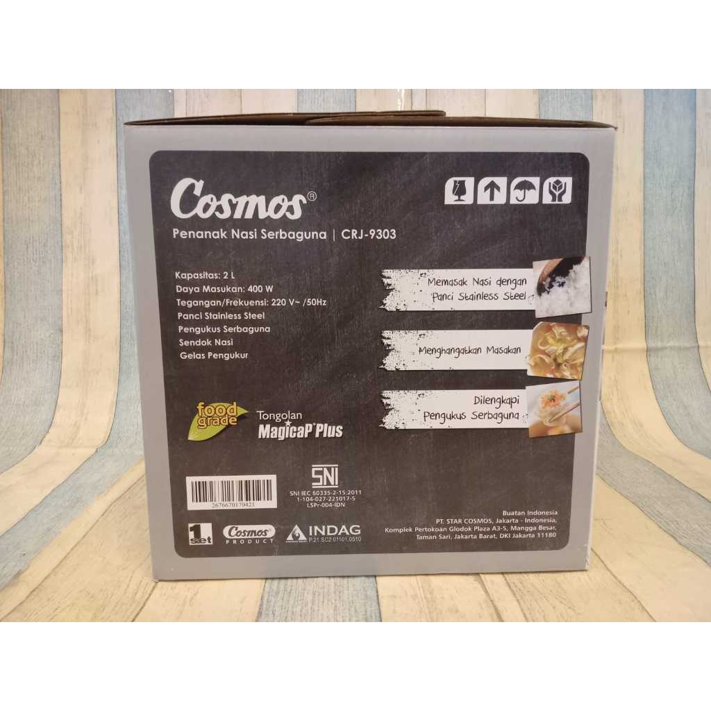COSMOS Rice Cooker 2 Liter CRJ-9303 Stainless Steel SUS304 Inner Pot