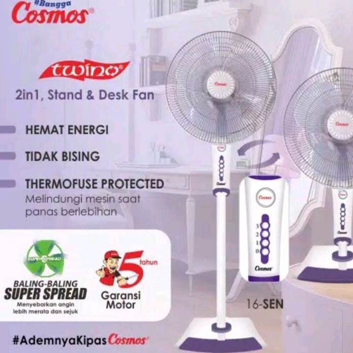 COSMOS : 16-SN/16-SEN/16-SNQ STAND FAN / KIPAS ANGIN BERDIRI TWINO 2IN1 16 INCH (2 FUNGSI)