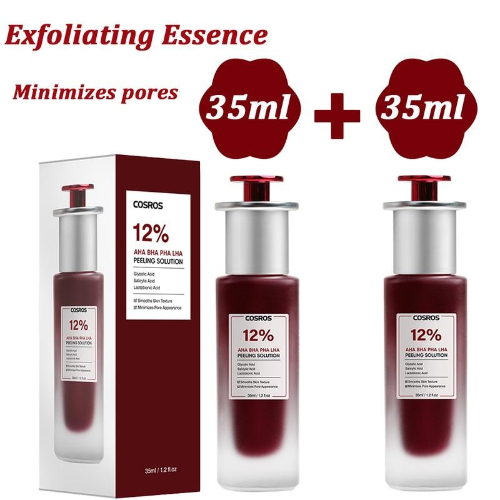COSROS 12Acid Peeling Solution Serum 30ml | Eksfoliasi Essence Wajah Mengangkat Sel Kulit Mati Exfoliating Anti Acne Mencerahkan Jerawat Dark Spot Brightening Whitening Pore Blackhead Removal Firming Exfoliating with AHA BHA PHA LHA