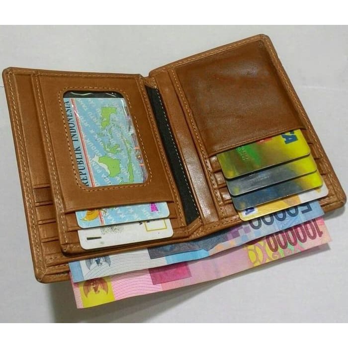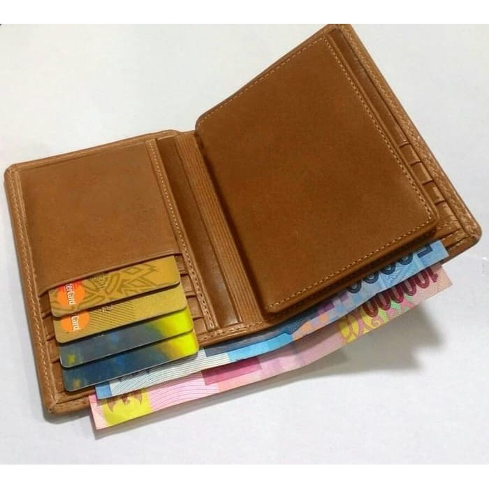 COSTUM NAMA/LOGO DOMPET KULIT SAPI COKLAT MUDA/TAN ASLI GARUT - Cokelat Muda