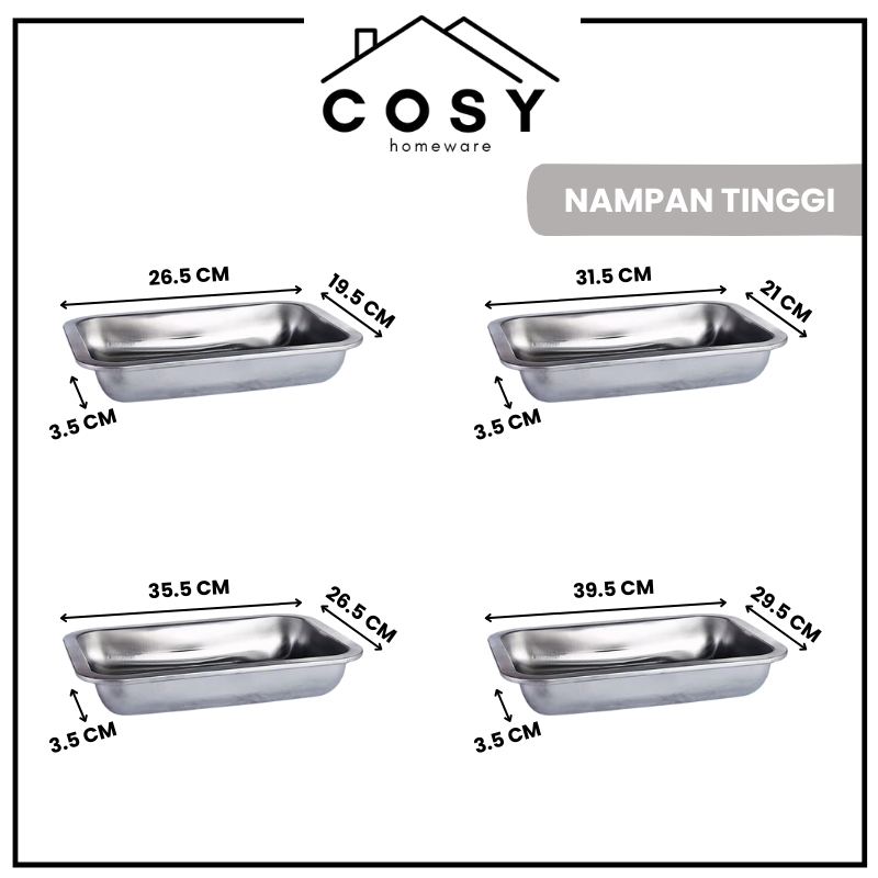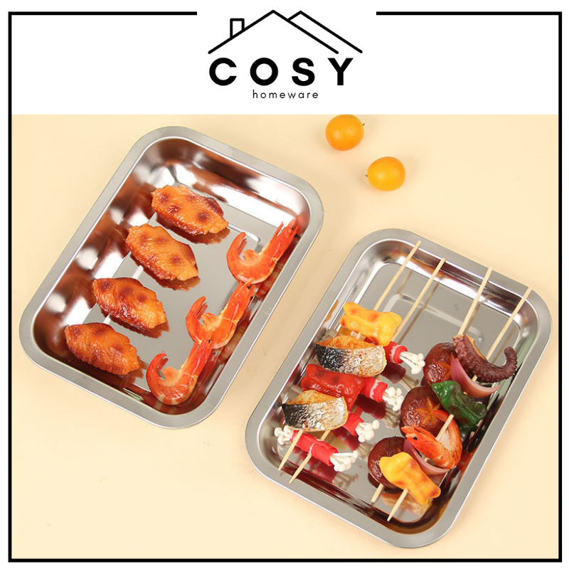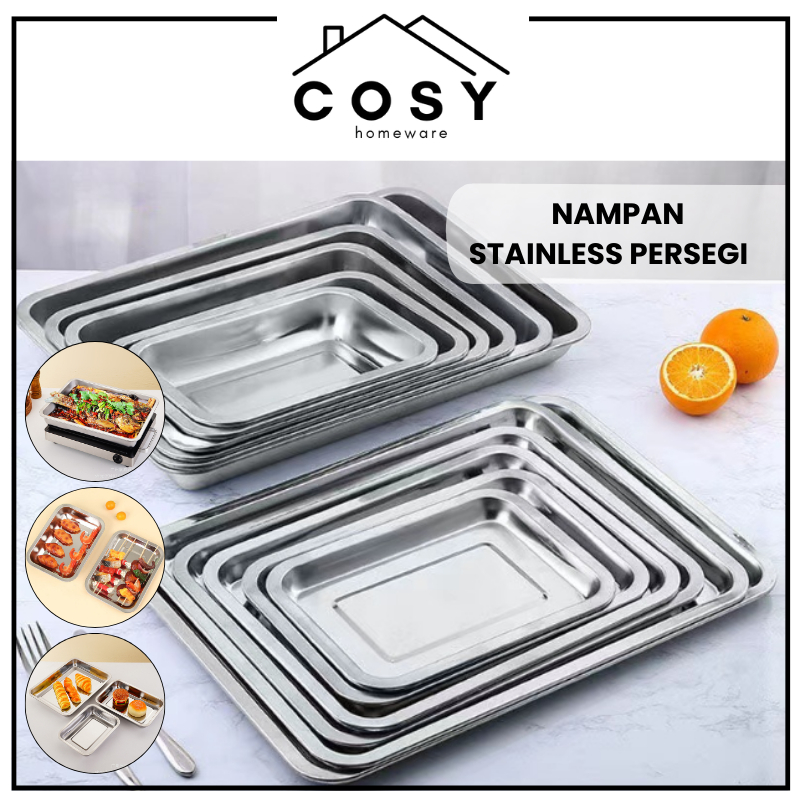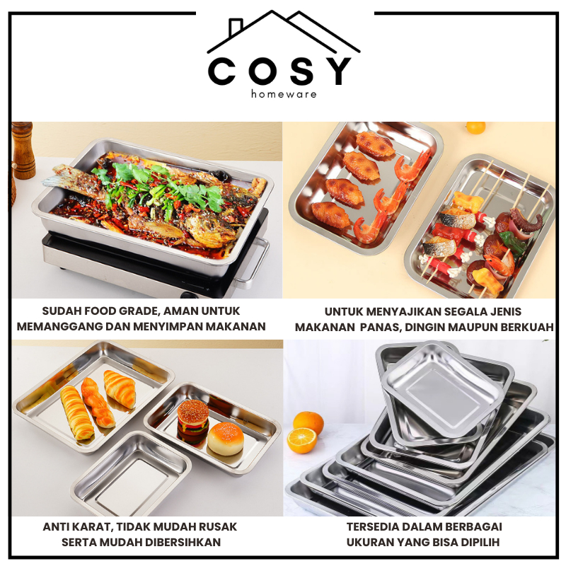 COSY Nampan Stainless Persegi / Nampan Peniris Minyak / Baking Tray Stainless / Nampan Baki Saji Tatakan Stainless Kotak Anti Karat