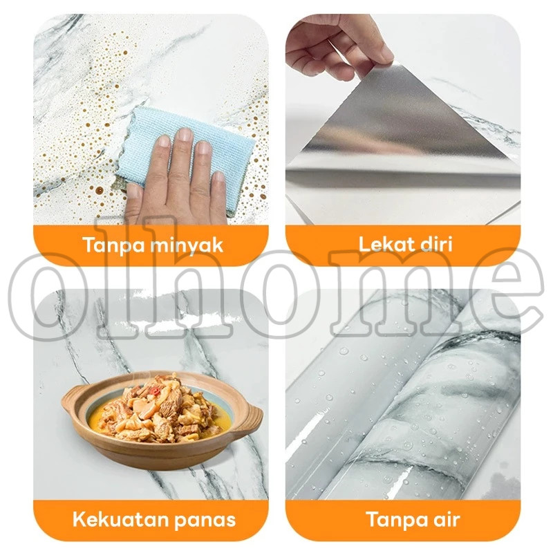 COZY Wallpaper Dinding Dapur 6 Meter X 60cm Alumunium Foil Motif Marmer Dasar Putih Corak Abu2 Dan Kuning