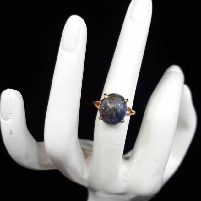 CP1175F231F cincin batu biru sembur fashion gold asli emas kuning antik langka no 11 d 1,5cm