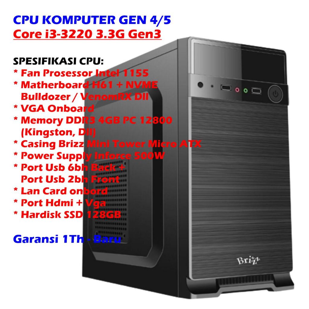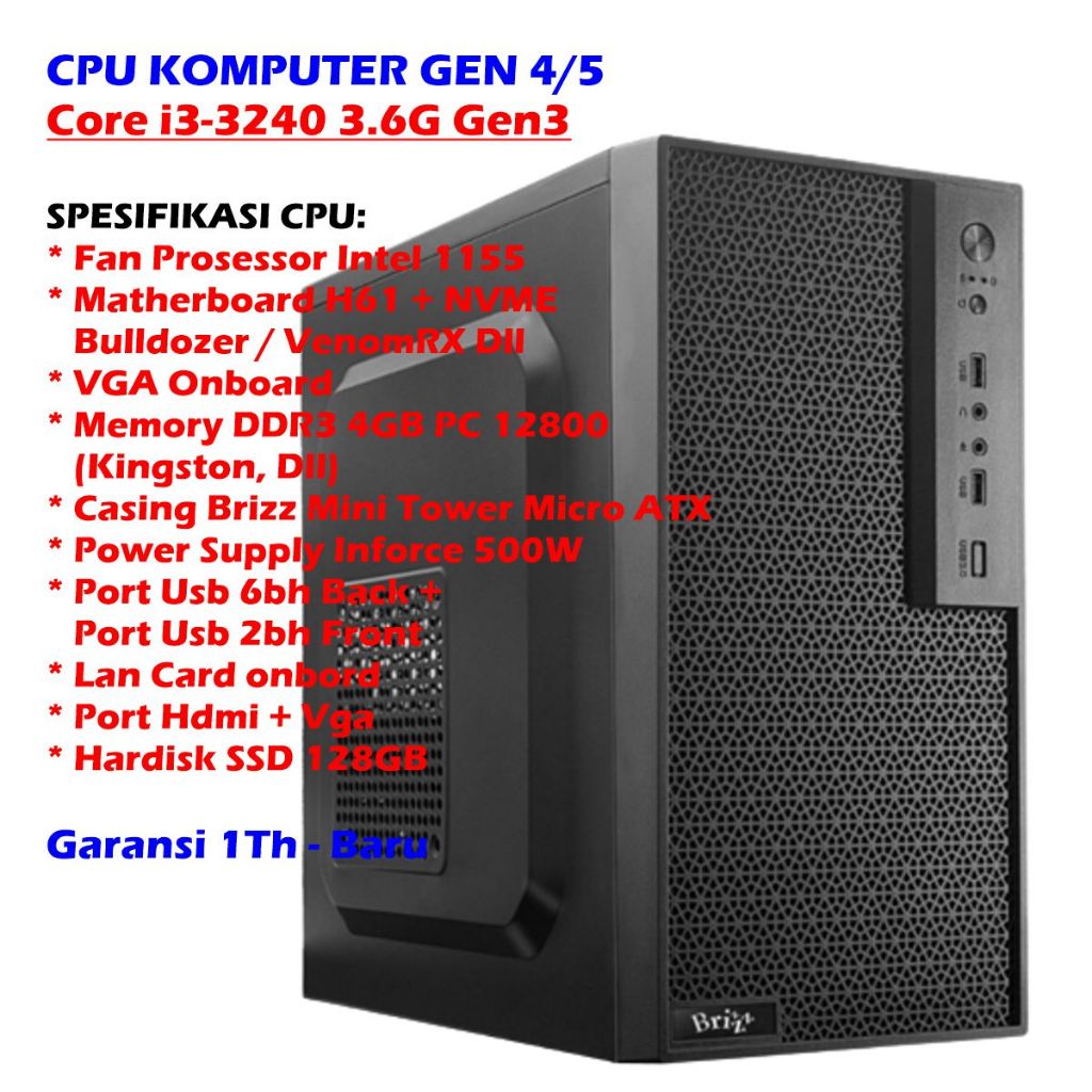 CPU KOMPUTER BARU INTEL CORE i7-2600 CPU KOMPUTER CORE i5-2400 CORE I5-2500 CPU CORE i3-2100 CORE I3-2120 CORE I3-3220 CORE I3-3240 CPU DUAL CORE, RAM 4G HDD SSD 128GB