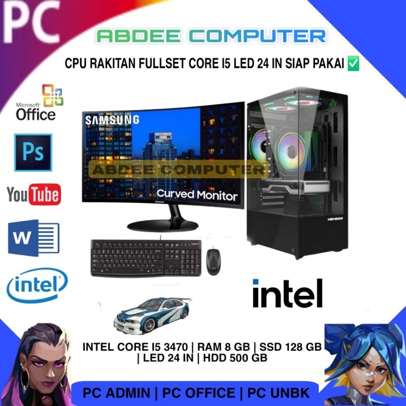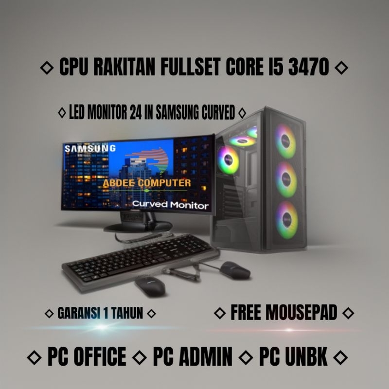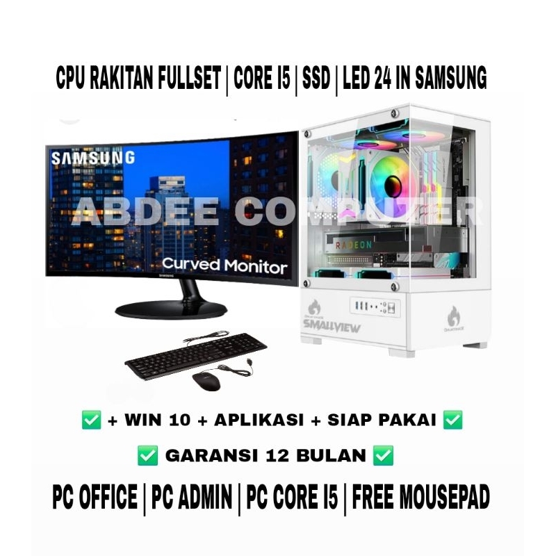 CPU Rakitan Pc Core I5 Ram 8 GB Ssd 256 Gb Hdd 500 Gb Gb Led 24 in Curved