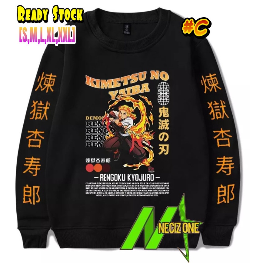 CREW NECK MANGA JEPANG DEMON SLAYER TOKOH KARAKTER KYOJURO RENGOKU PILAR API (BISA PILIH MOTIF A/B/C)