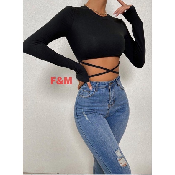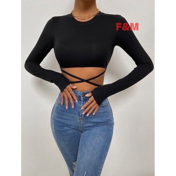 CROPTOP ATASAN BAJU CROP (FE-55) WANITA LENGAN PANJANG KOREA LEHER BULAT DENGAN TALI BISA ATUR SPANDEK PREMIUM KOREA BAJU CROP WANITA