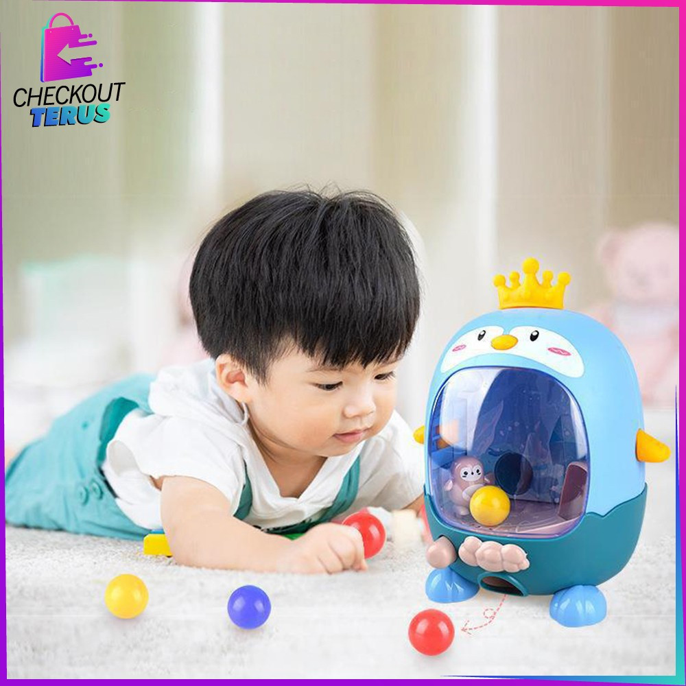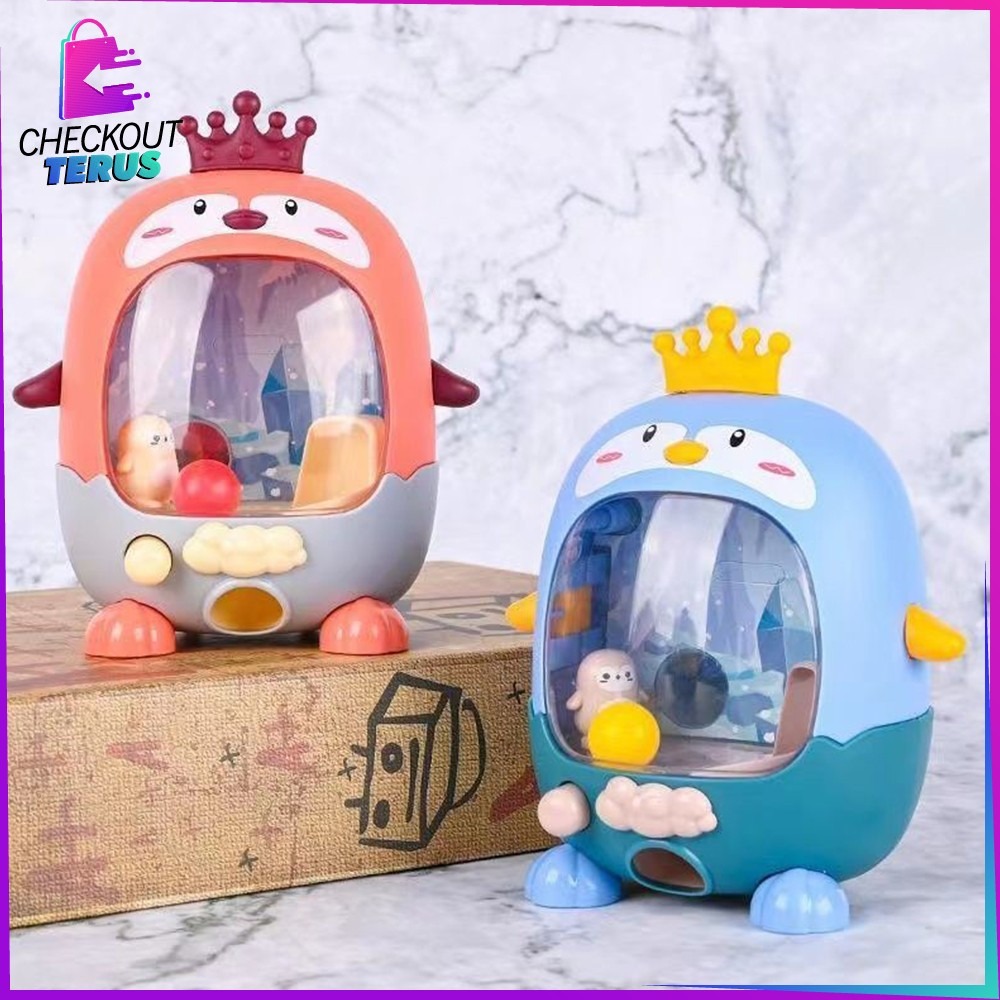 CT M322 Mainan Anak Ayam Bola Mini Lucu Karakter Penguin Mainan Interaktif Mesin Ketapel Bola Basket Anak Sepak Bola Jari Mini