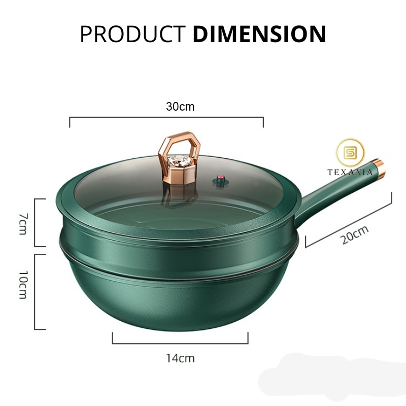 CUCI GUDANG⚡ TEXANIA Wajan Steamer (Hijau) Wajan Kukus Batu Medis Anti Lengket 30cm | Panci Kukus 2 Susun Full Gold diameter 28cm