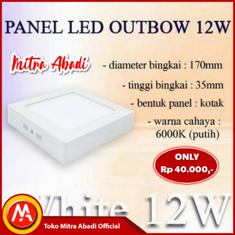 CUCI GUDANG - Panel LED 12W Putih / White 6500K Kotak Besi OUTBOW