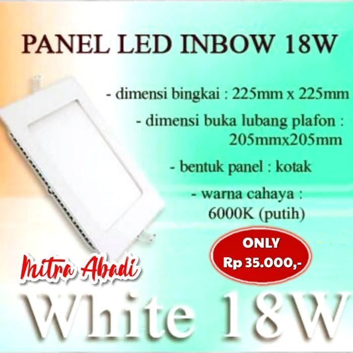 CUCI GUDANG - Panel LED 18 Watt Putih / White 6500K INBOW Kotak Besi