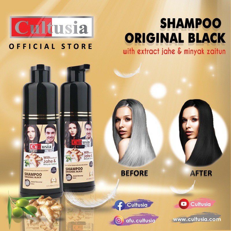 CULTUSIA SHAMPO ORIGINAL BLACK / BROWN | CULTUSIA SHAMPO UBAN EXTRA JAHE & MINYAK ZAITUN 160ML