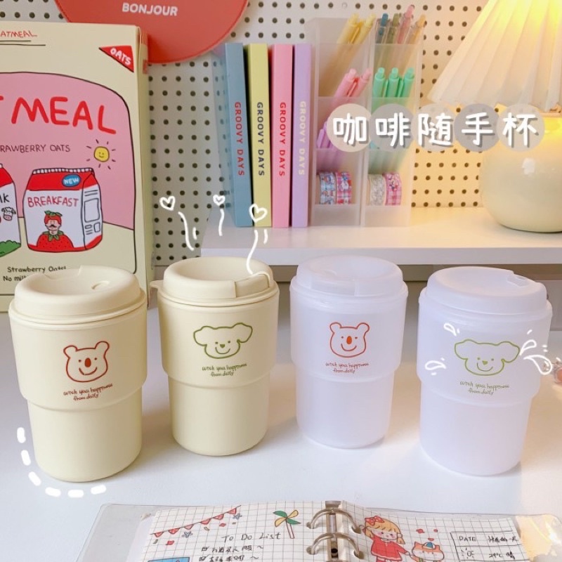 KOREAN TUMBLER CUP COFFE DAN TEH ESTHETIC / BOTOL MINUM KOPI TEH PANAS DINGIN ES /TUMBLER TEMPAT AIR MINUM LUCU KARAKTER KARTUN