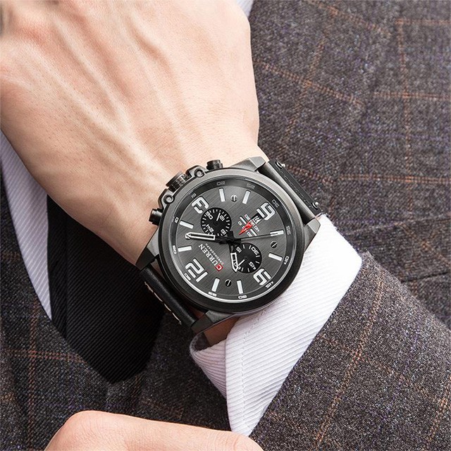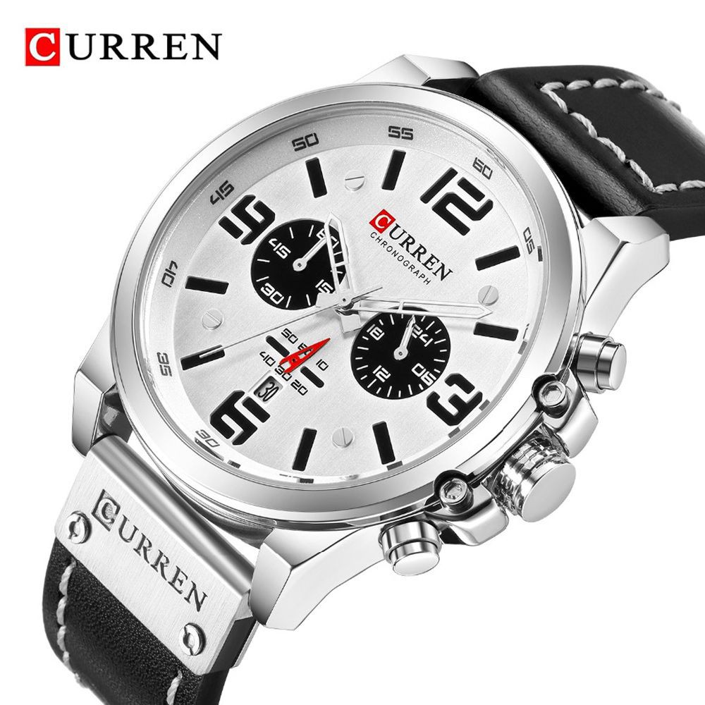 CURREN 8314 Jam Tangan Pria Analog Tali Kulit Chronograph Aktif CURRENOS