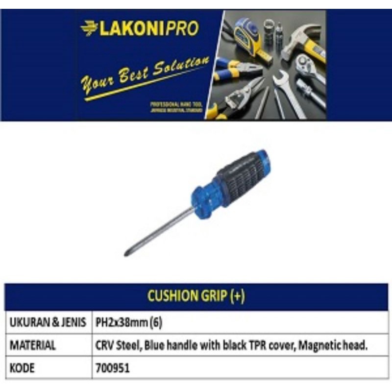 CUSHION GRIP (+) / OBENG (+) LAKONI PRO (6) PH2x300mm, PH2x200mm, PH2x125mm, PH2x100mm, PH2x38mm.
