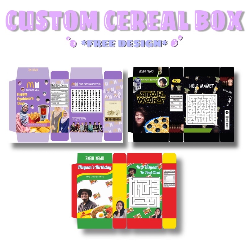 CUSTOM BOX SEREAL KOTAK CEREAL BOX CUSTOM / BOX KADO / BIRTHDAY BOX CEREAL