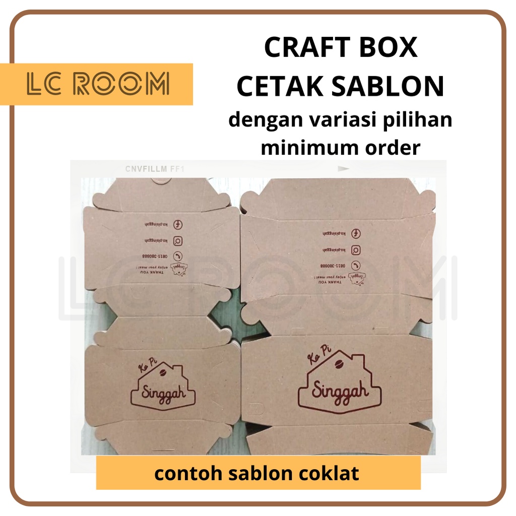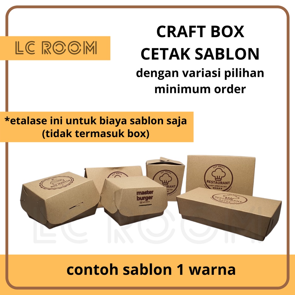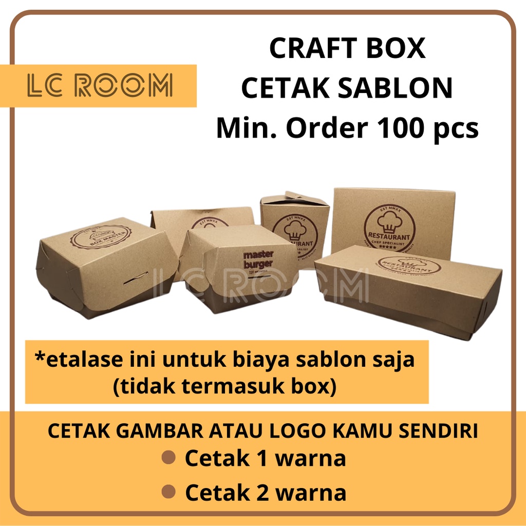 CUSTOM CETAK PRINT SABLON LOGO SABLON BOX CUSTOM GAMBAR DUS KEMASAN MAKANAN BERLOGO SENDIRI KRAFT HAMPERS - untuk biaya cetak saja