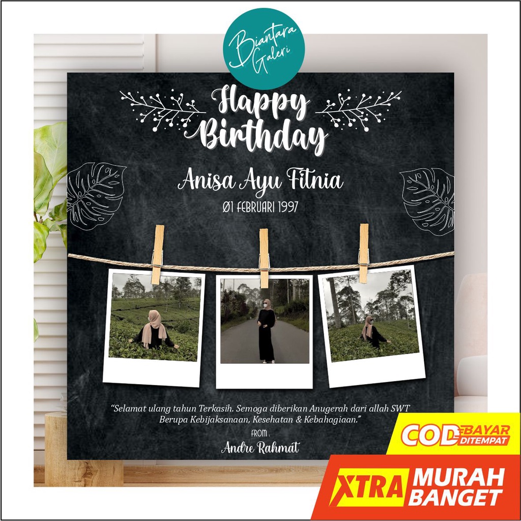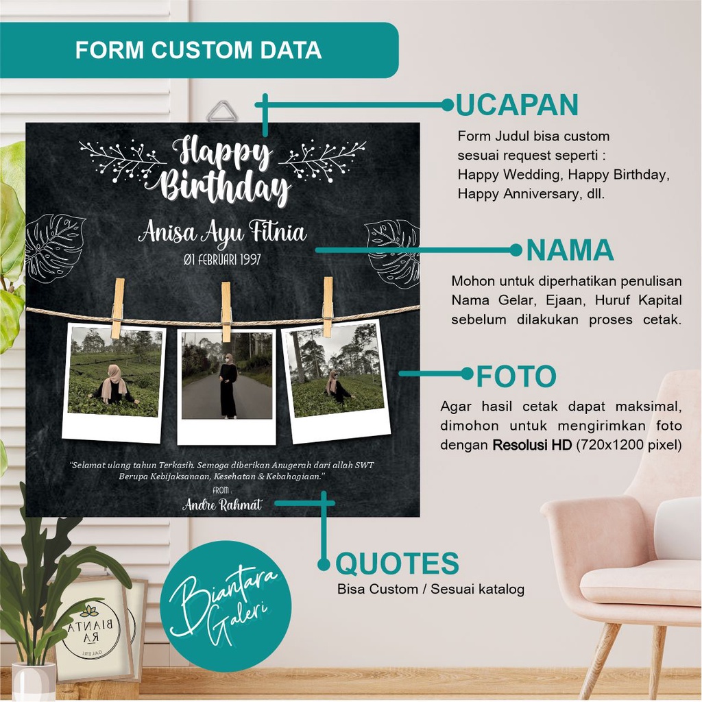 CUSTOM KADO CETAK FOTO UNIK HD + BINGKAI KAYU 20x20 Cetak Foto MDF Termurah Kualitas HD
