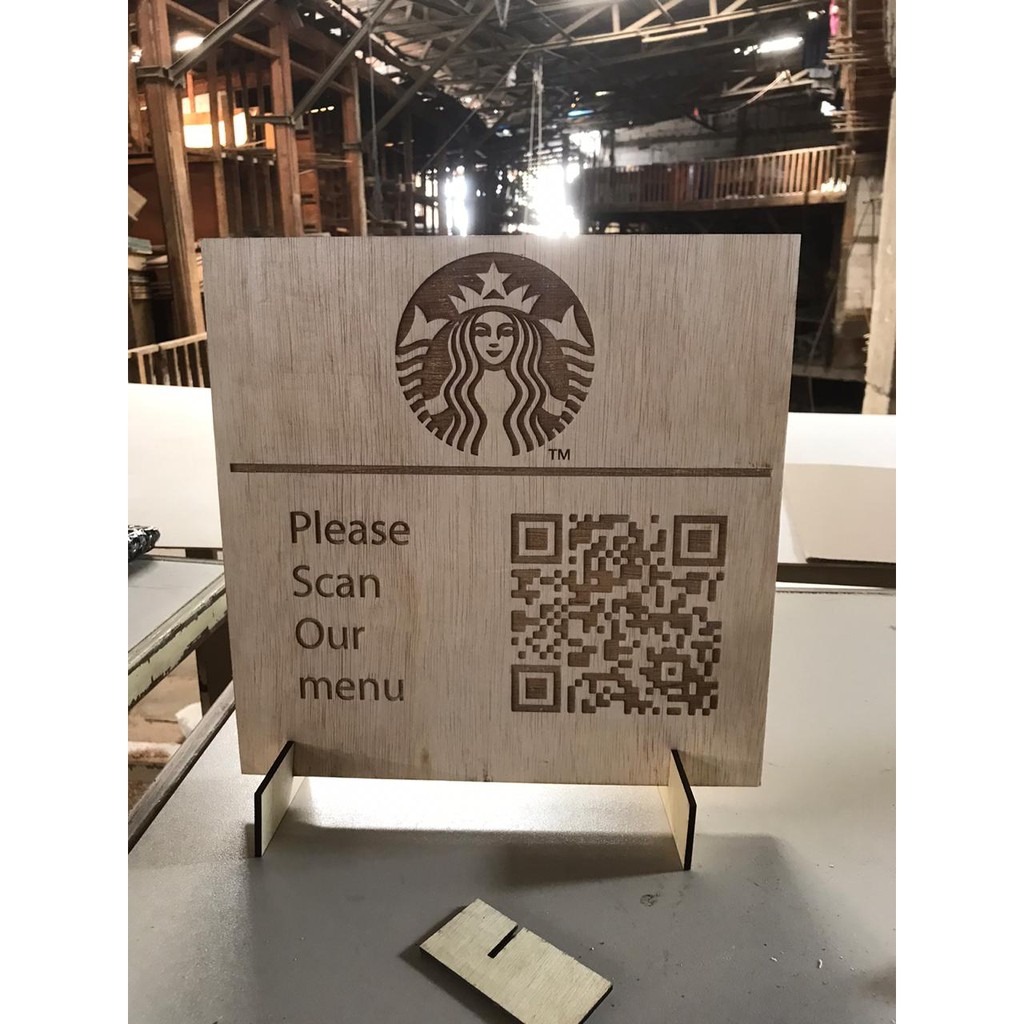 CUSTOM PAPAN KAYU BARCODE SCAN MENU/WEBSITE/PAYMENT