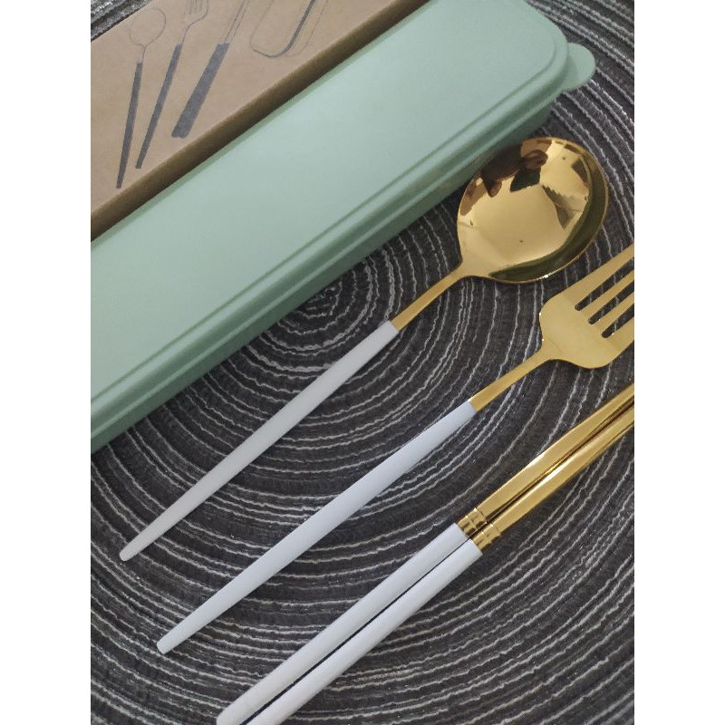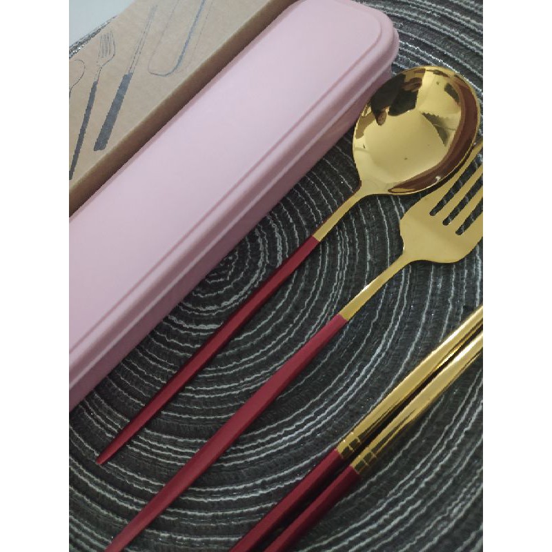 CUTLERY SET 3 IN 1 / CUTLERY BOX / SET MAKAN / SENDOK GARPU SUMPIT / SENDOK KOREA