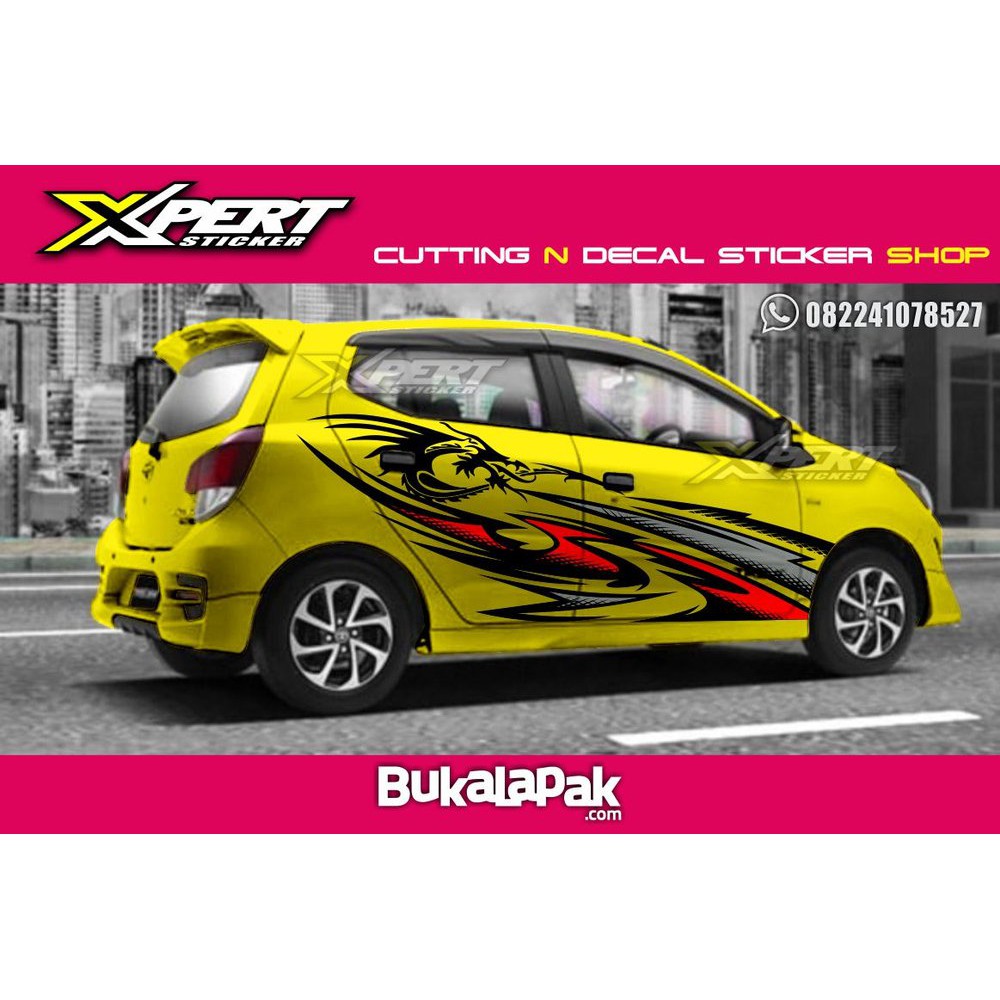 CUTTING STICKER AGYA AYLA STICKER TRIBAL STRIPING MOBIL AGYA MERAH KUNING