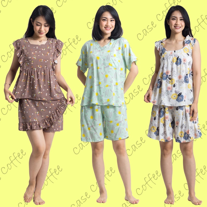 PDK BAJU TIDUR WANITA DEWASA PIYAMA WANITA SETELAN CELANA PENDEK ONE SET KATUN RAYON PREMIUM