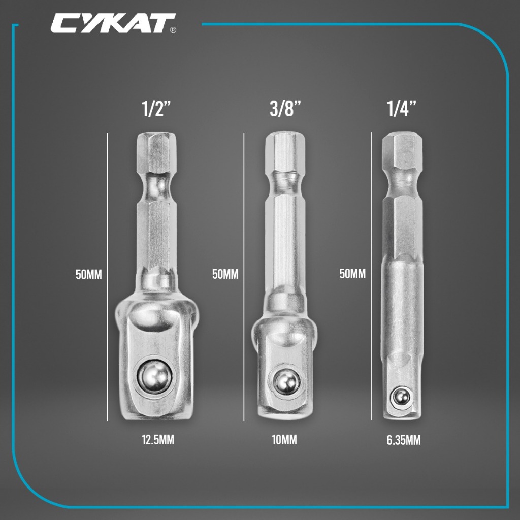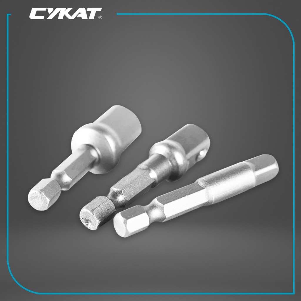 CYKAT Adaptor socket 1/4" impact driver 3pcs / Adapter kunci sock hex shank set isi 3pcs / Adaptor socket hex 1/4" ke mesin screwdriver / Adaptor untuk Impact Driver Hex Shank ke Mata Bor Ekstensi 3 Pcs
