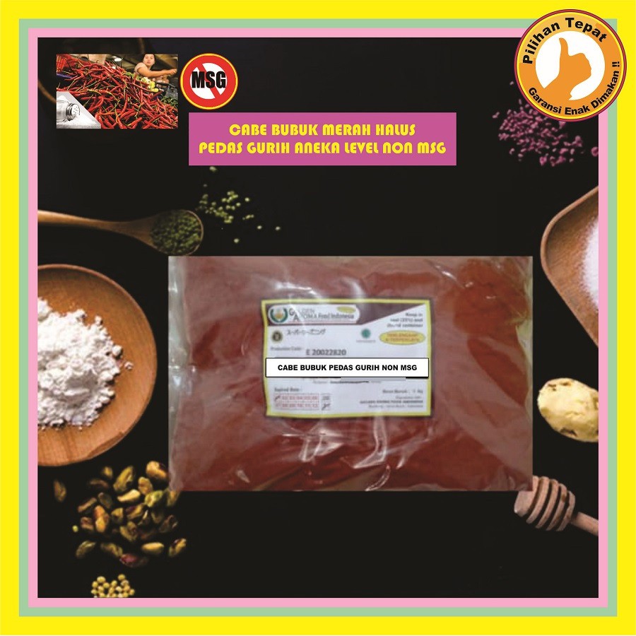 Cabe Bubuk Pedas Asin Gurih Aneka Level Non MSG 1 Kg Enak Murah Lezat Bubuk Cabe Level 1Kg No MSG