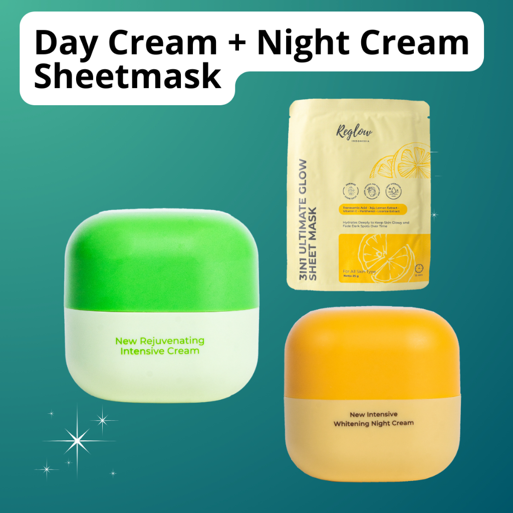 Reglow Double Cream krim malam dan siang Untuk semua Jenis Kulit Mencerahkan Perawatan Wajah Pencerah Flek Hitam Glowing menyamarkan Bekas Jerawat Day Cream dan Night Cream