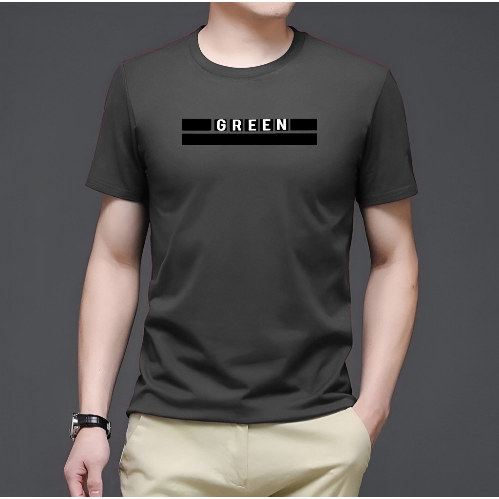 Kaos Pria Distro Lengan Pendek Bahan Katun Premium Motif Green Baju Cowok Dewasa Original Size M-3XL