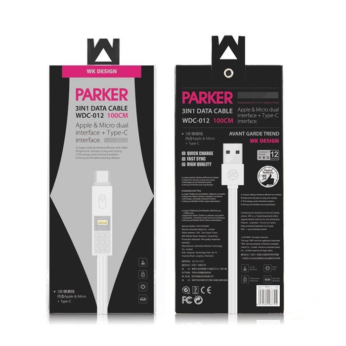 Cable 3 in 1 WK Design Parker Cable Type C , LIghtning , Micro USB
